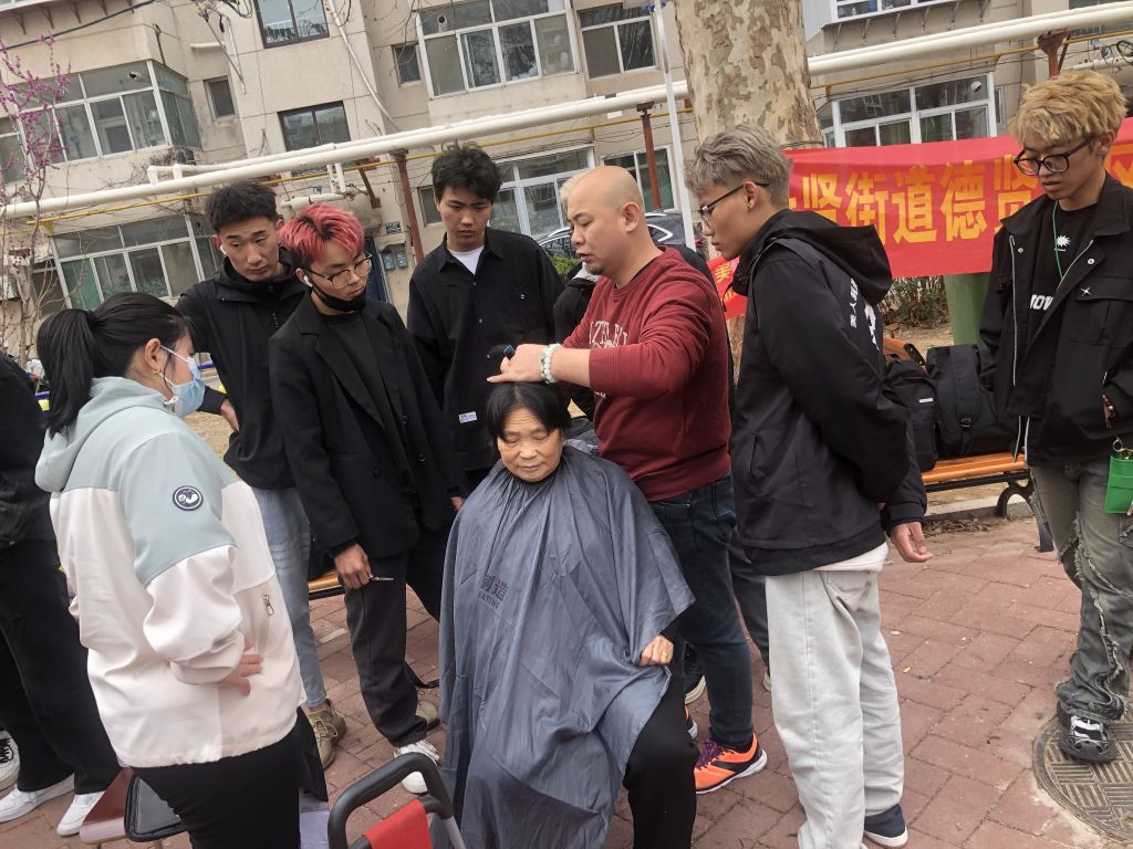 另一边的义剪现场,工作人员手持剪刀、推子、梳子等工具,耐心地询问老人的需求,不一会儿工夫,就让老人略显“凌乱”的发型整齐起来,老人们看着镜子中的自己,脸上露出了开心满意的笑容。