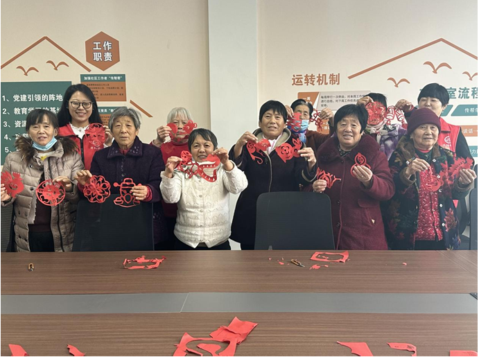 小组初始,社工带领组员回顾上节活动手指操内容和小组契约,老人们乐在其中,笑哈哈的表示年龄大了记忆力不如年轻人了,但是手上的动作却跟得上社工的节奏,紧接着社工在互动中以“玩”为主题,从谁和孩子玩,玩什么,怎么玩,如何与孩子互换身份在角色扮演中体会双方的感受与想法进行探讨,两位组员分享了自己在养育孙子女过程中的做法,并讲述了在隔代养育方面的观念想法,通过互动分享激励大家在隔代教育上要勤于思考,才能与孙子女的关系更加融洽。接着,社工带领组员进行剪纸,组员们纷纷表示学会了回家带孩子一起剪,既能加强互动又能加深感情,组员们在剪纸过程中交流经验,不知不觉的将与孙辈的互动情节加入到讨论内容中,在欢乐的氛围中,卡纸变成了“小物件”,组员的能力也得到了提升。