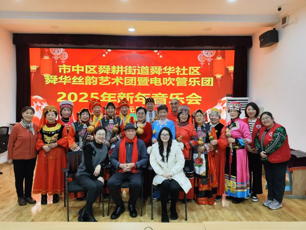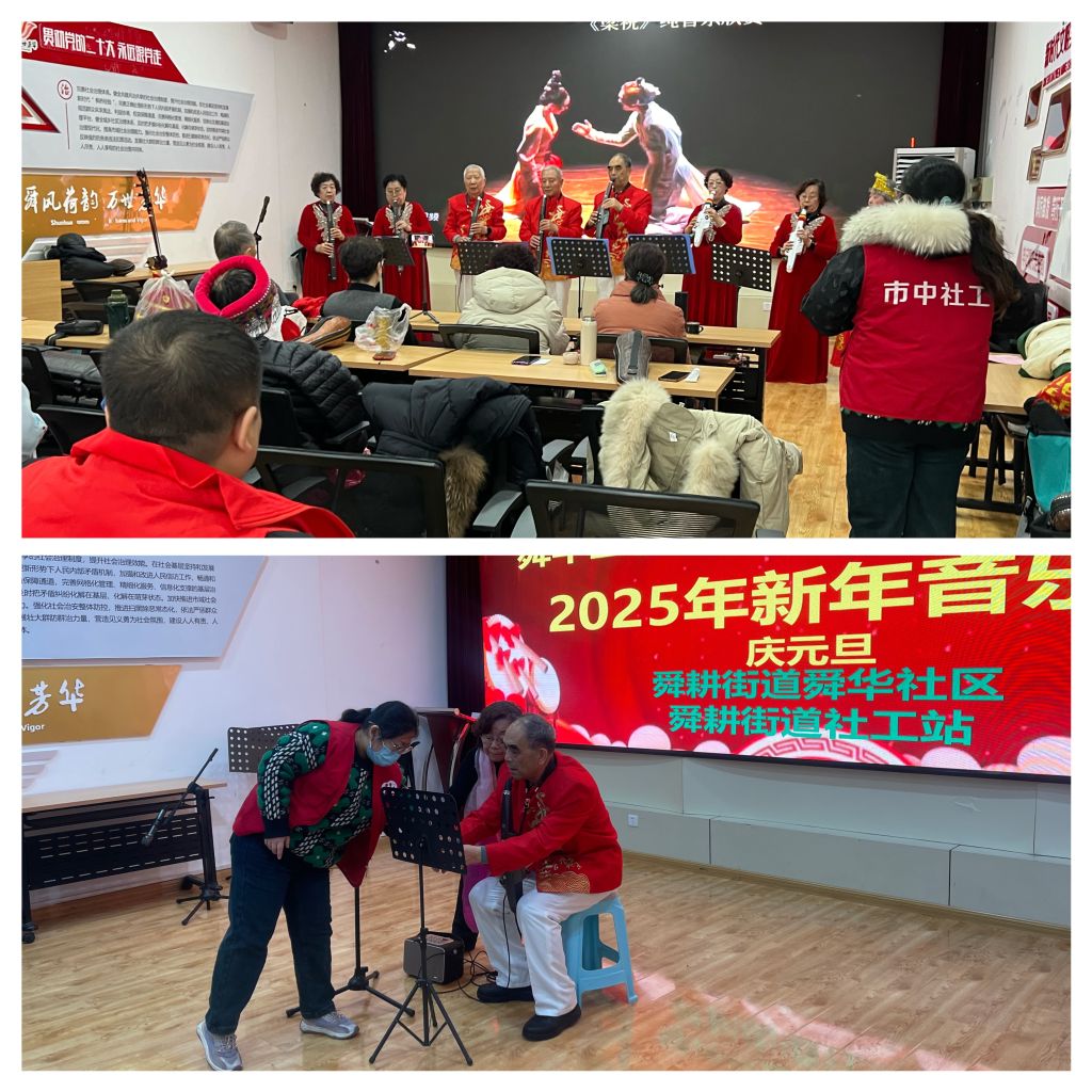12月31日,在2025年元旦佳节即将来临之际,舜华社区携手舜耕街道社工站及舜华丝韵艺术乐团暨电吹管乐团,在舜华社区新时代文明实践站共同开展了《丝韵流转乐享新声——2025年“庆元旦”新年音乐会》。此次音乐会旨在迎接新年的到来,展现社区居民的文化风采,促进社区和谐氛围,同时为晚年生活增添色彩与欢乐。