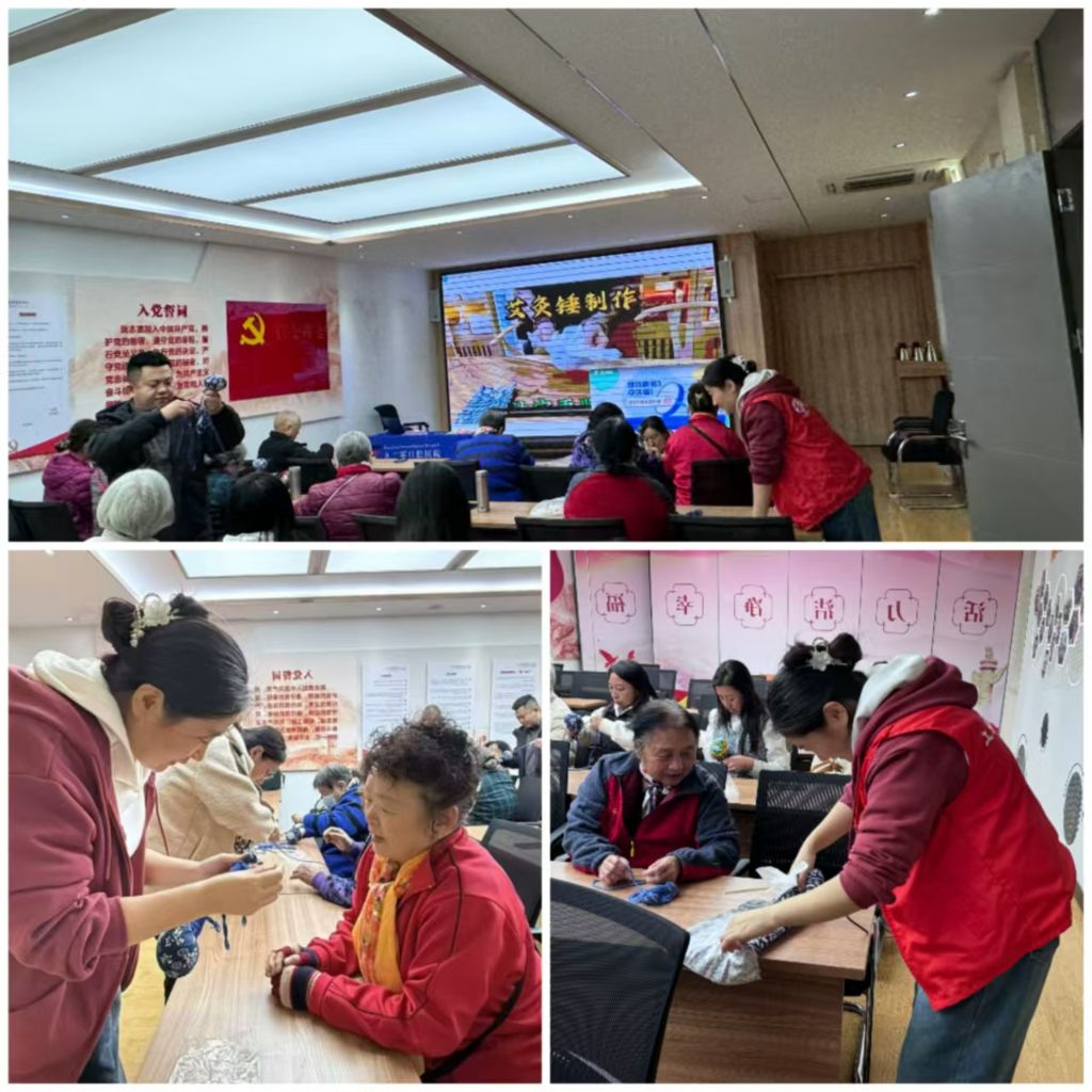 牙齿健康安全讲座后,活动来到下一个环节——制作艾草锤。艾草锤作为一种传统的中医保健工具,具有疏通经络,缓解疲劳的功效。在社工的耐心指导下,老人们开始动手制作艾草锤,大家拆开各自的材料包,在社工的带领下一步步仔细地填充艾草,用布料小心地将艾草包裹起来,用绳子将锤柄和锤头连接起来。制作过程中,社区老人们互相帮助,彼此分享制作艾草锤的心得,心与心之间的距离变得更加亲近,在轻松愉快的氛围中增进彼此的了解。