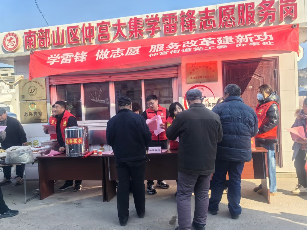 在仲宫大集学雷峰志愿服务岗联合宣传科、长缨志愿服务队、人社中心、妇联、仲宫司法所等部门,为过往群众提供免费热水、赶集向导、手机充电、法律咨询、惠民政策咨询等便民服务。社工们热情周到的服务吸引了众多群众驻足,他们耐心细致地为每一位群众提供服务,用实际行动诠释着雷锋精神,赢得群众一致好评。一位老人激动地说:“这些年轻人真不错,每次来赶集都得来喝杯热水解解渴,雷锋精神又回来了!”