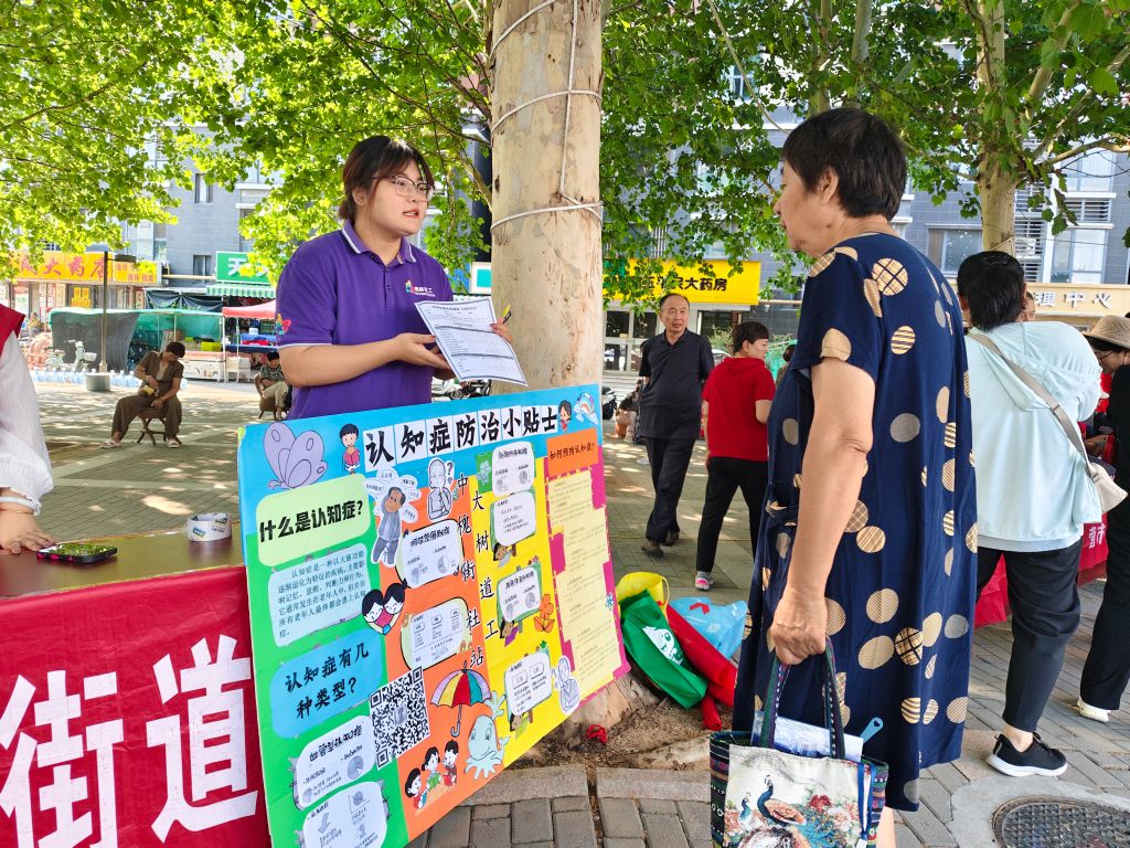民政社工为居民讲解认知症预防小知识并发放自测量表
