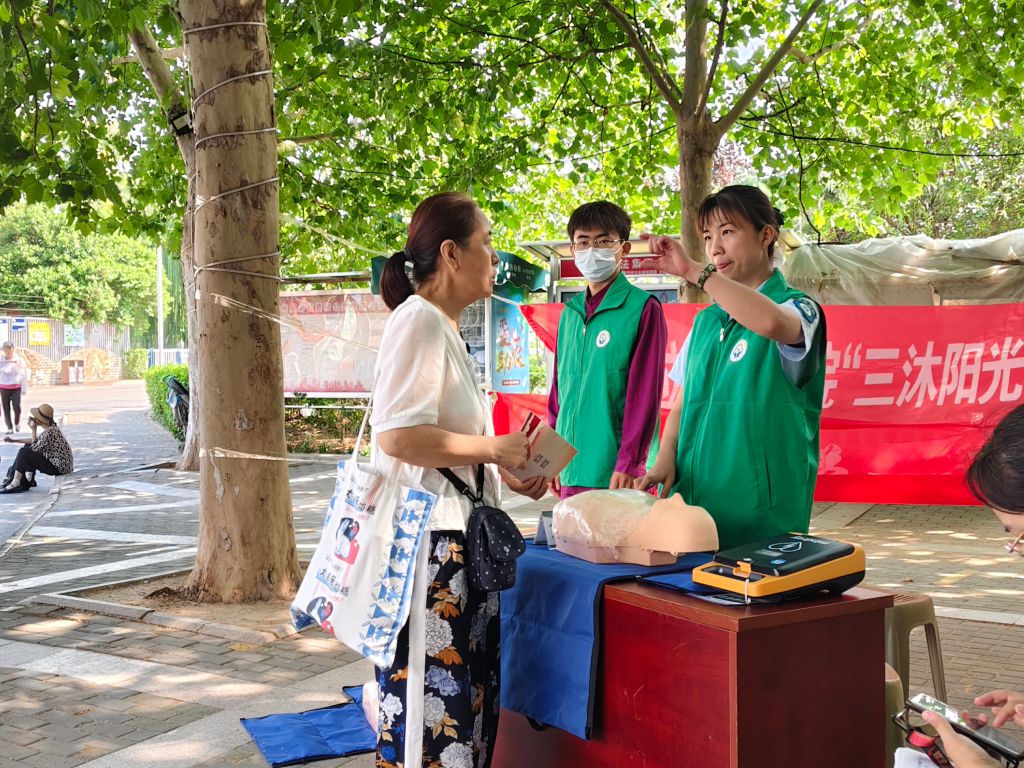 多元主体提供服务,辖区居民在慈善力量中感受大爱。为了让辖区居民能够在家门口享受便利服务,本次活动针对“老少青”居民都设置了多样的服务:一方面是通过专业医务社工的讲解和演示,为居民提供基本的急救知识和技能培训,提高居民在紧急情况下的自救互救能力。另一方面是组织理发师志愿者为社区高龄老人提供免费理发服务,让其感受到关爱和温暖。而中大槐树街道社工站也为辖区老人进行了认知症的防治宣传,鼓励老年人保持社交活动和积极心态,减缓认知症的发生。除此之外,还为辖区居民提供禁毒知识宣讲、免费贴膜等服务,让辖区居民在家门口感受慈善大爱。