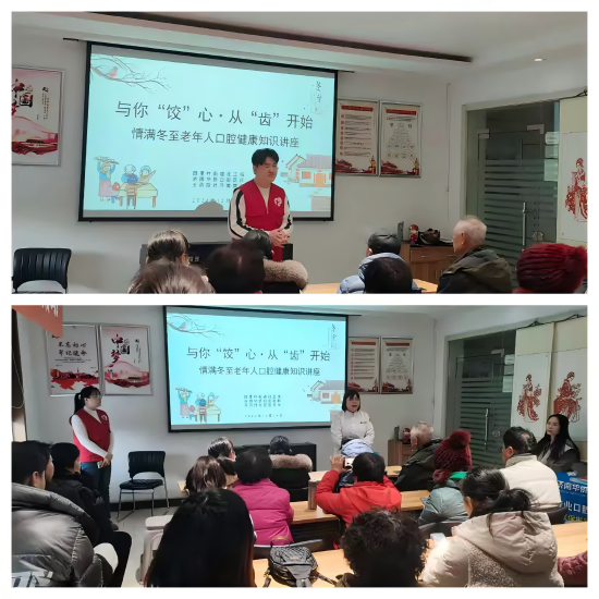 2024年12月19日,市中区四里村街道社工站联合玉函路社区居委会及济南华侨口腔医院,举办了“与你‘饺’心·从‘齿’开始——情满冬至老年人口腔健康知识讲座”。活动旨在关爱社区内老年人健康,传递冬日温暖,弘扬中华民族尊老敬老的传统美德,增强社区归属感与凝聚力。