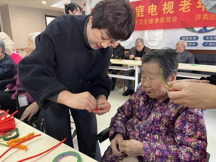 活动现场,氛围热烈而温馨,济南家庭电视老年大学的授课老师向大家详细讲解绒花制作的传统工艺与技巧。参与者们围坐在一起,全神贯注地投入手工艺创作之中,从剪裁到塑形、装饰,一道道工序有条不紊,在一缠一绕间,一朵朵寓意着 “柿柿如意” 的精美绒花逐渐成型,红彤彤、黄澄澄的硕果饱含着老人们对美好生活的期许与祝福。