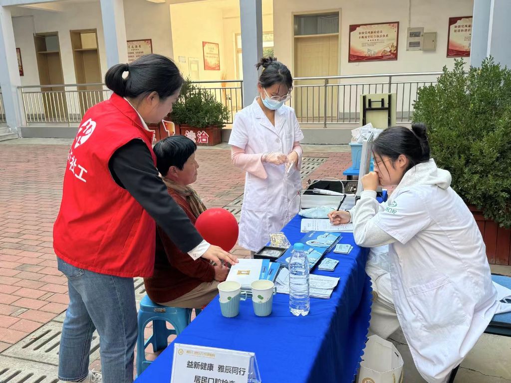 社工在活动现场积极引导居民有序参与义诊,并发放口腔健康宣传资料,向居民们普及口腔健康的重要性以及日常口腔护理的方法。同时为居民们介绍了社工站的其他服务项目,鼓励居民们积极参与社区活动,共同营造一个健康、和谐的社区环境。