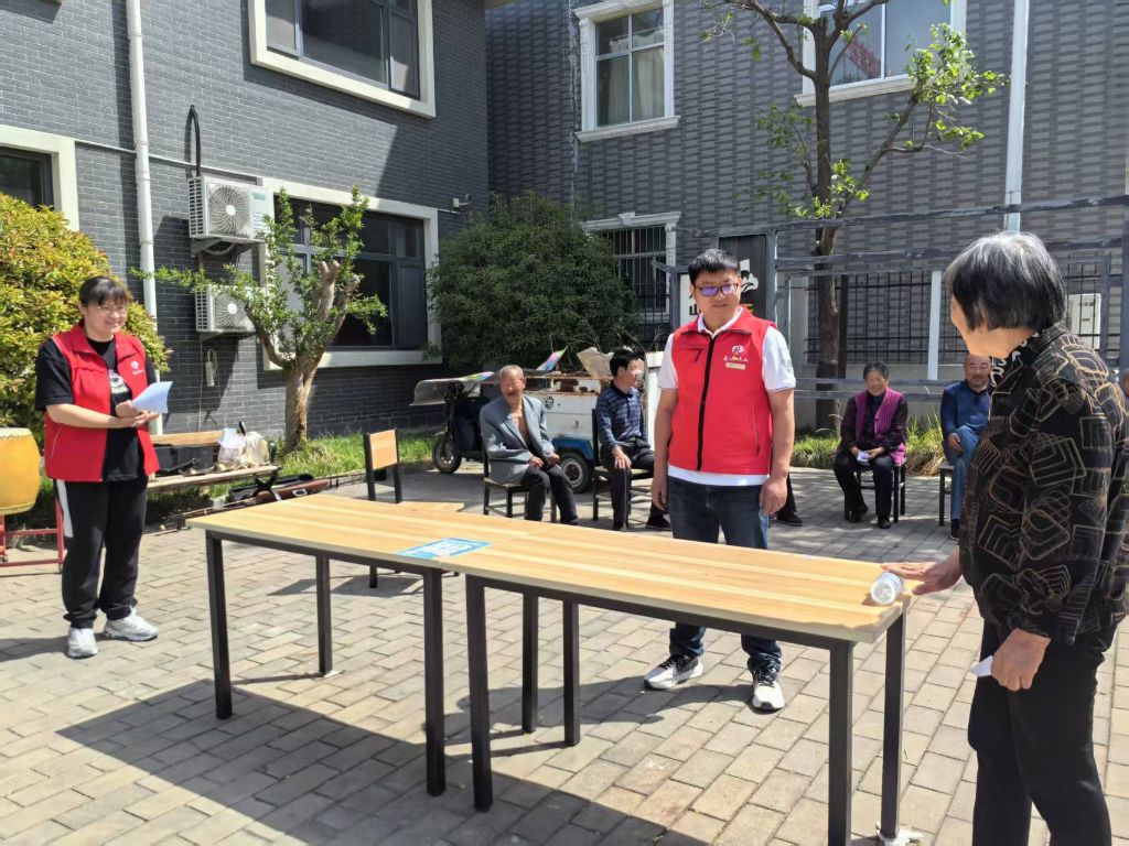 活动伊始,以"滚瓶大挑战"热身游戏拉开序幕。社工精心布置赛道,将矿泉水瓶作为目标物,老人们需将矿泉水瓶沿地面滚向社工提前画好的分数区域(1-5分圈),每人有3次机会,累计总分最高者获胜。看似简单的游戏考验着老人们的专注力与手眼协调能力,现场不时爆发出"差一点就全中""这球路太调皮"的欢快呼喊。场面热闹非凡。经过激烈角逐,最终三位选手凭借出色表现分获冠、亚、季军,社工为他们颁发了精心准备的奖品,每位参与者也收获了纪念小礼品。
