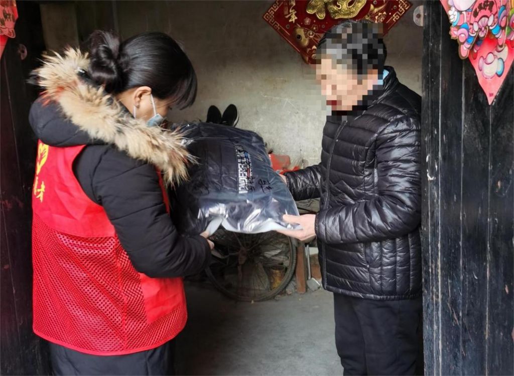 社工站将民政局发放的羽绒服、保温杯、棉帽和围巾等物资悉数清点分类,并对接相应社区,安排好入户发放时间。社工与新时代文明实践站的志愿者们按照约定时间,将防寒物资交付到困境儿童及其家长手中。