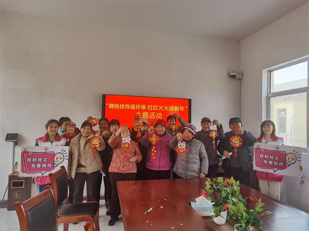 岁末年关,为了让辖区老年人度过一个富有“中国味”的新年,感受传统节日魅力,同时提高文明意识、倡导禁燃禁放的观念。1月23日,平阴县孔村镇社工站开展“鞭炮挂饰倡环保 红红火火迎新年”主题活动。