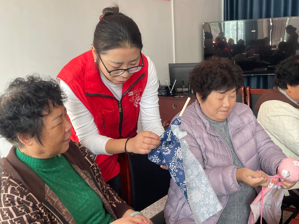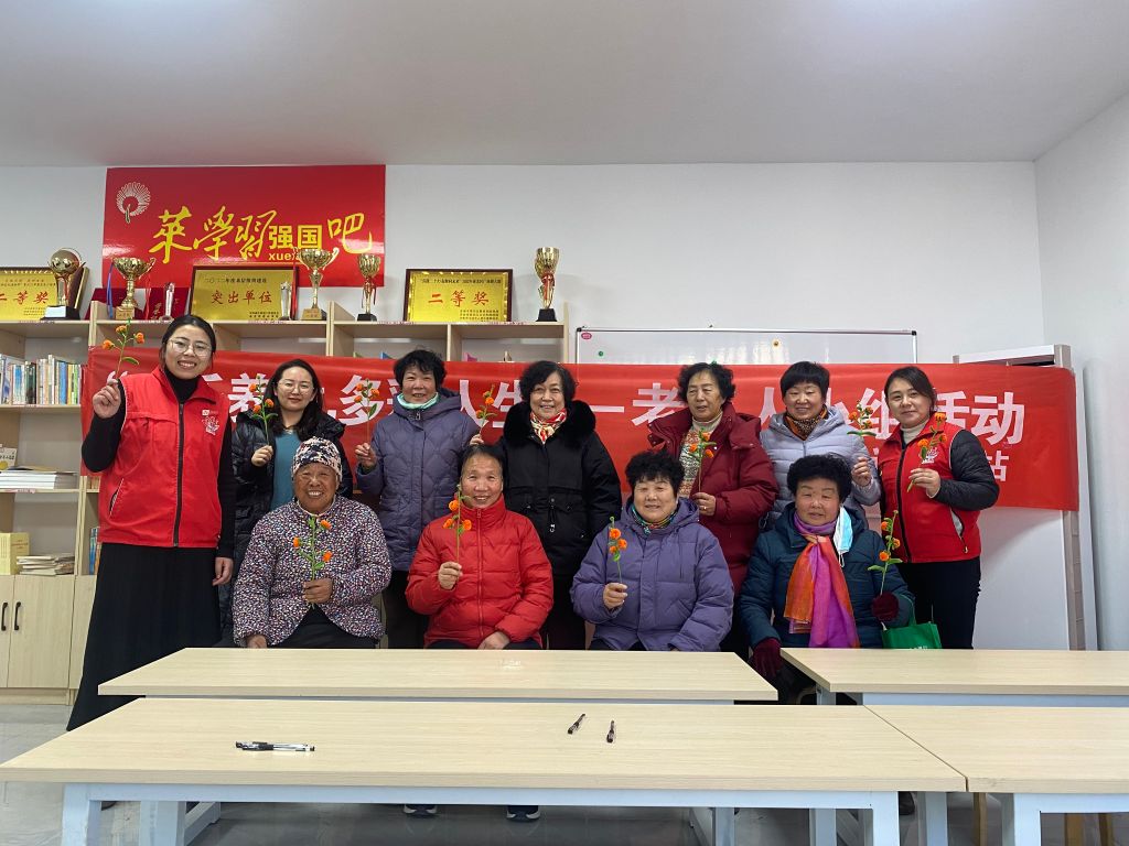第四节,社工与组员们回顾了上一节活动的内容,接着引出本节的主题:冬季保健知识。社工为大家科普了冬季养生的正确概念和常见的理解误区,并结合冬季养生的特点,从饮食原则、进补食疗、食物搭配等方面进行了讲解。小组成员们也一起探讨在睡眠、饮食、运动和情绪等方面的注意事项,组员之间也乐于分享自己平时保持健康的方法,组员之间的凝聚力更强了。随后,活动进入了手工制作环节。社工们为老人们准备了丰富的手工材料,同学生志愿者一同指导他们亲手制作精美的“柿柿如意”手工作品。在制作过程中,老人们不仅锻炼了动手能力,还充分发挥了自己的想象力和创造力,制作出了一件件独一无二的手工作品。这一环节不仅让老人们感受到了成功的喜悦,也增进了他们之间的友谊和互动。