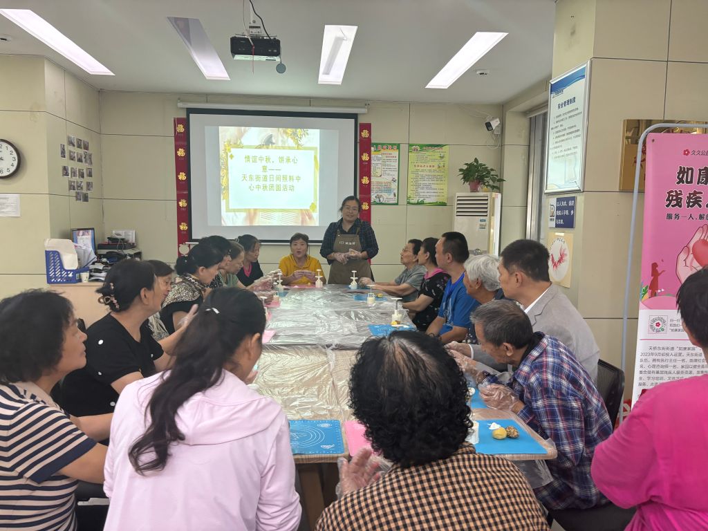 浓情中秋,共语团圆,一年一度的中秋佳节即将来临之际,为了弘扬和传承中华民族优秀传统文化,让辖区老年人感受到节日的温暖,增进邻里之间的互动。9月11日上午,天东街道社工站在街道日间照料中心开展“情谊中秋,‘饼’承心意”长者中秋团圆活动。