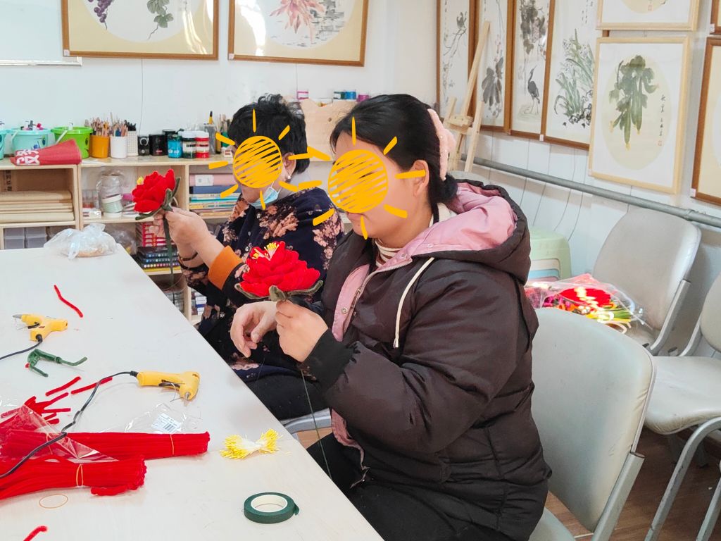 1月10日,舜玉路街道社工站开展“微爱相伴 助力减压”低保重残家庭照护者互助小组第五节活动。本次小组活动以手工牡丹花、减压游戏为载体,旨在丰富组员精神文化生活,缓解其身心压力,强化组员互助支持和沟通交流。