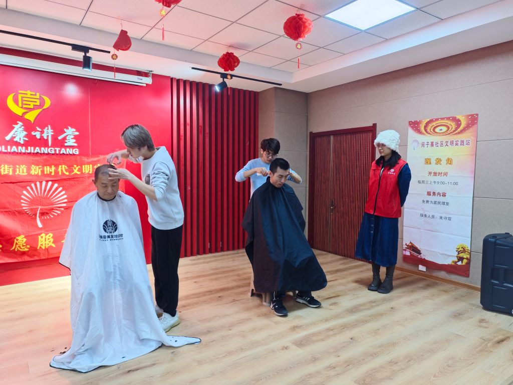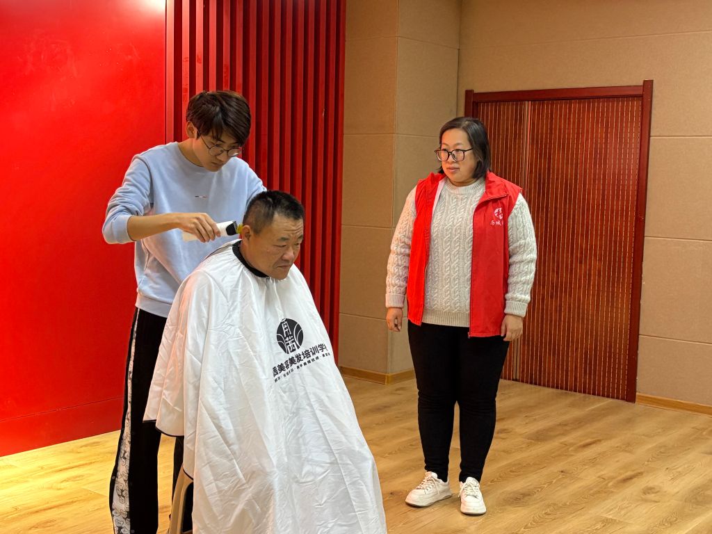 活动当天,社工早早地将活动场地布置得温馨而有序,志愿者们热情地迎接每一位前来参加义剪的老人。理发师们身着统一的志愿者服装,手持专业工具,耐心细致地询问每位老人的理发需求,从修剪发型到修剪白发,每一个细节都力求完美。而社工们则忙碌地穿梭其中,与老人们亲切交谈,了解他们的生活需求和心理状态,整个现场洋溢着温馨和谐的氛围。一位刚剪完头发的老奶奶笑着对社工说:“这样的活动真是太好了,既方便了我们老年人,又让我们感受到了社区的关怀。”除了为老年人提供理发服务外,志愿者们还借此机会向老人们宣传了冬季健康知识,提醒他们注意防寒保暖,合理安排饮食起居,确保身体健康。