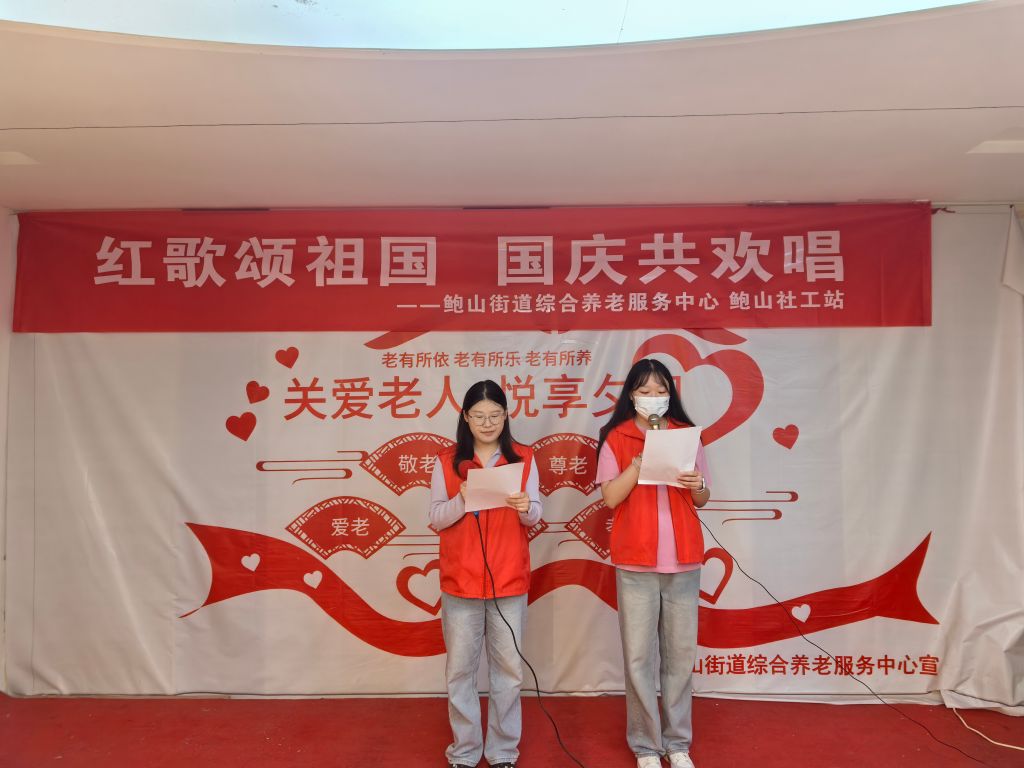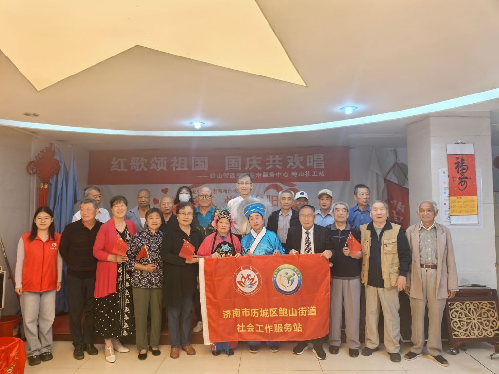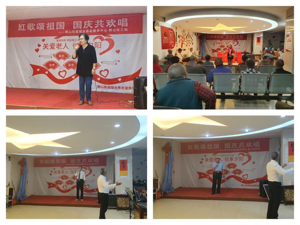庆国庆,抒爱国情。为弘扬爱国主义精神,传承红色基因,激发社区居民的爱国情怀,9月30日上午,鲍山街道社工站携手鲍山综合养老服务中心开展“红歌颂祖国,国庆共欢唱”国庆节主题文艺汇演活动。此次活动吸引了众多社区居民的积极参与,共同用歌声表达对祖国的热爱与祝福。