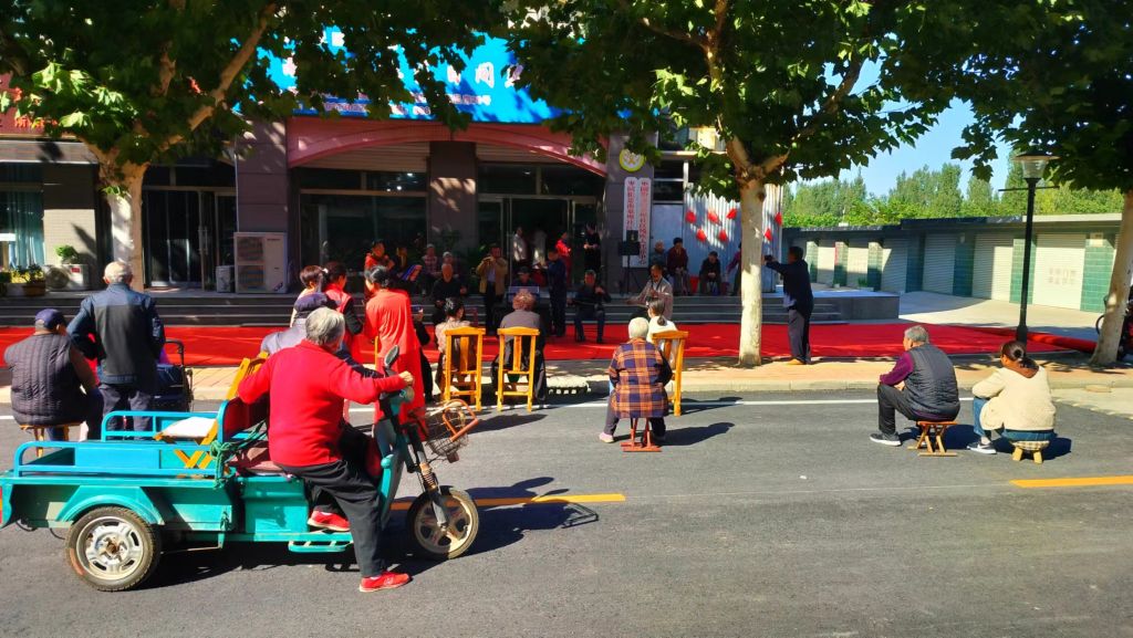 “还是聚在一起聊天比较好,这可比个人在家看电视好耍多了。”社区居民窦大爷说,邻居们聚在一起打打牌,下下棋,并且这里还有志愿者的陪伴,感觉生活很丰富、很开心,内心也感到很温暖。老人们不时和旁边的志愿者聊着,有说不完的心里话。吃完饭,邻居刘大爷拿出了二胡带头拉了起来,别的老人也相继拿出了自己的看家本领,有的吹唢呐,有的吹箫,老人们一起唱起了红歌,歌颂新时代中国的幸福生活。