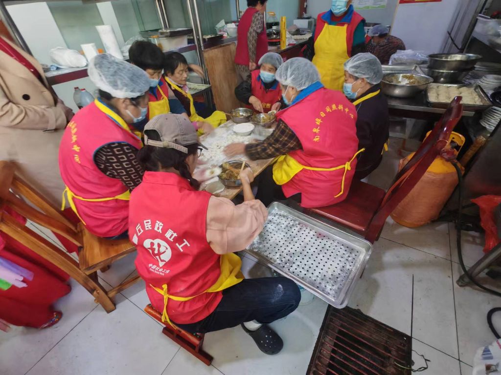 上午9点多,社工们和志愿者便整理好桌椅、摆放好工具,为老人们包起了水饺。老人们陆续到场,社工们边包饺子边和老人们闲聊起来,期间社工们还详细的了解他们的生活和身体状况,并叮嘱老人秋冬季节来临,注意保暖。不多久,包好的水饺被端上桌,老人们幸福的吃起了水饺。