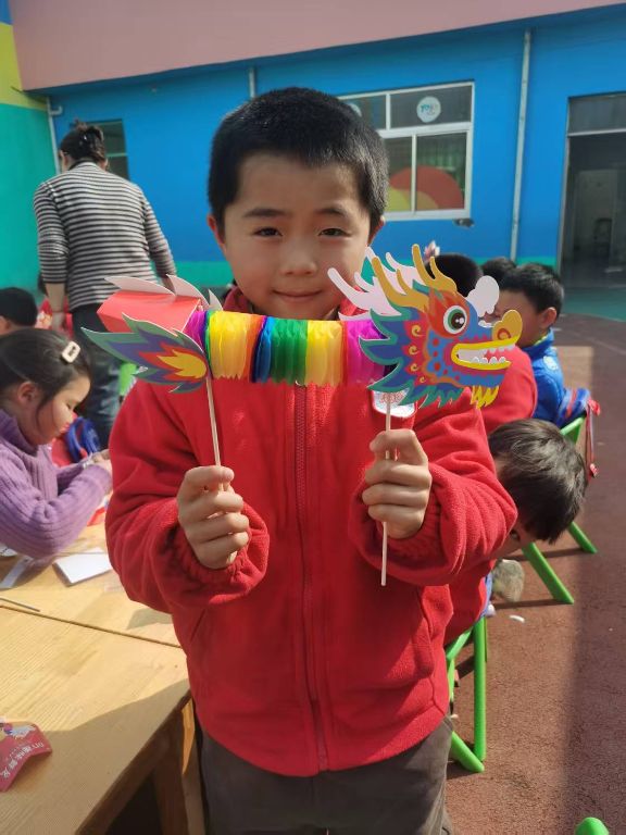"看,我的龙多神气!"孩子们举着亲手制作的"彩龙",脸上洋溢着自豪的笑容。