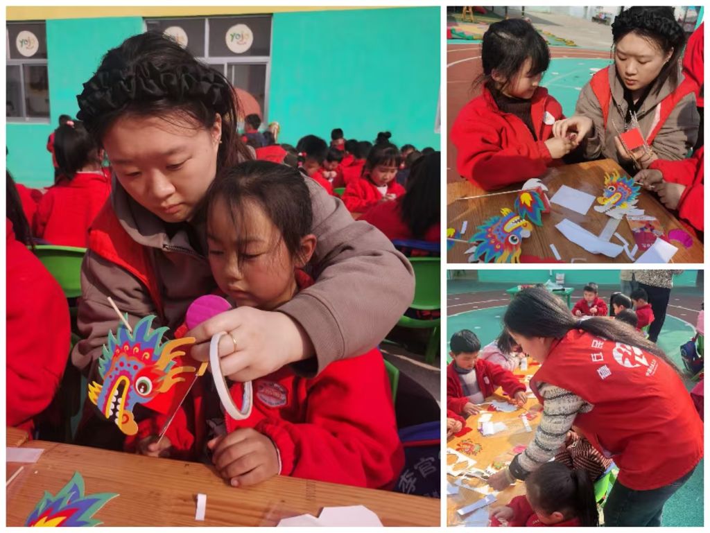 为了让孩子们更直观地感受节日氛围,社工们还准备了五颜六色的拉花材料,带领孩子们一起制作"舞龙"。在社工的耐心指导下,孩子们分工合作,有的剪纸,有的粘贴,有的组装,不一会儿,一条栩栩如生的"彩龙"就诞生了!