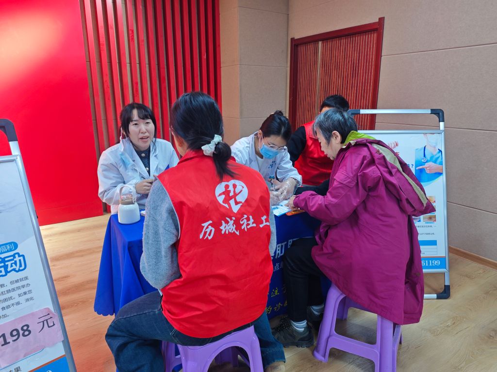 活动现场,医护人员们为老年人提供了免费的体检服务,包括热感检测、甲状腺检查、骨密度筛查等项目。医生们耐心地为居民解答各种健康问题,给予专业的医疗建议和治疗方案;与此同时,社工们化身“健康大使”,他们不仅协助医生进行基础的健康检查,更重要的是,他们运用专业的倾听技巧,耐心倾听每一位老年人的健康困扰与需求,用温暖的话语搭建起老年人与医护人员之间的信任桥梁。这种“一对一”的个性化服务,让老年人感受到了前所未有的尊重与关怀。最后大家纷纷表示,这样的活动让他们在家门口就能享受到优质的医疗服务,非常方便和贴心。