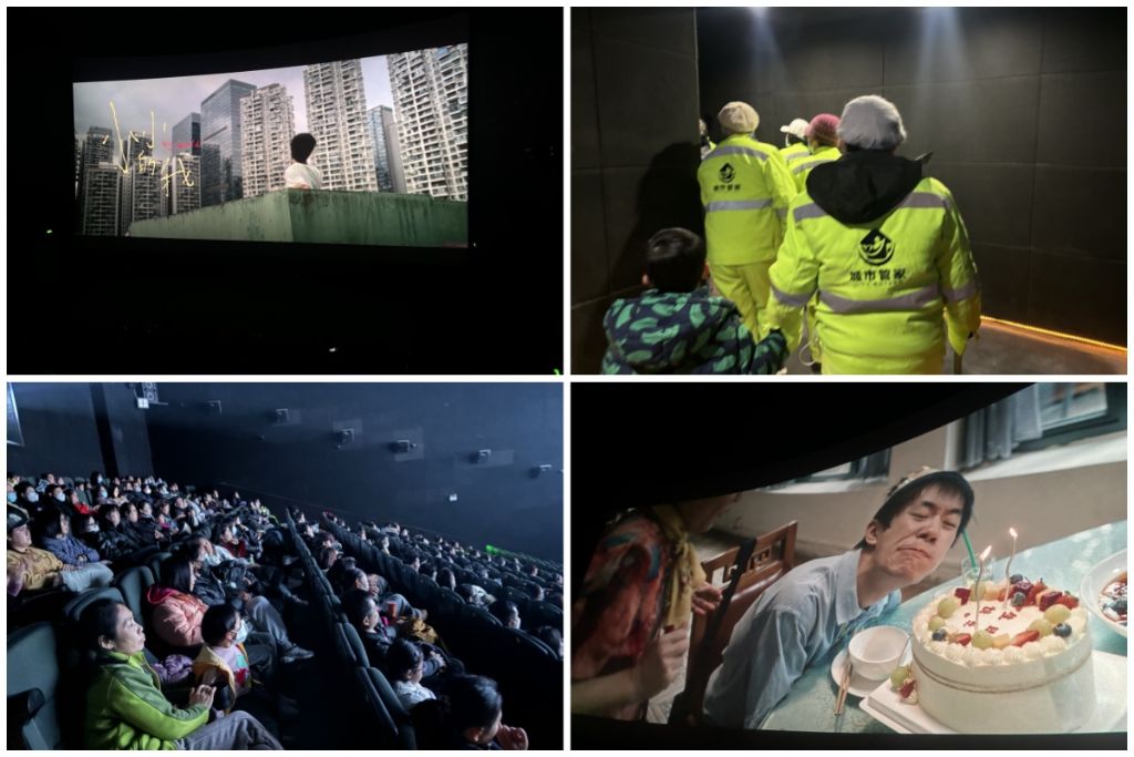 社工与志愿者早早来到影城等候大家,为每个社区划分了集合的区域,参与活动的成员到达后,社工和志愿者一一进行引导,合影后大家开始进入影厅。在社工与志愿者耐心地引导下,大家有序进入,每一个贴心的搀扶、每一句轻声的叮嘱,都如同冬日暖阳,温暖着在场每一位服务对象的心。