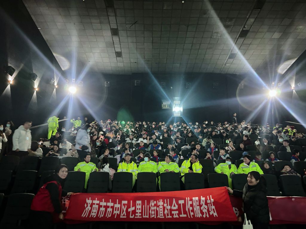在前期的需求调研中,社工发现困难群体大多存在文化娱乐生活贫乏的情况,在新春佳节来临之际,为进一步丰富困难群体精神文化生活,营造轻松愉悦、其乐融融的节日氛围,七里山街道社工站链接山东文旅集团星辉影城,联合卧龙社区、七东社区、七西社区,邀请辖区环卫所环卫工人、残疾人家庭、独居老人、志愿者等共计140人共同参与“光影筑梦暖冬季 携爱同行迎新年”公益观影活动。