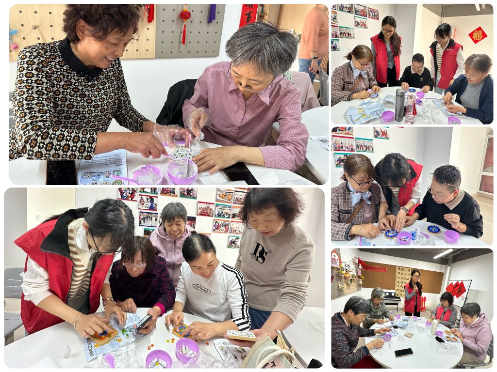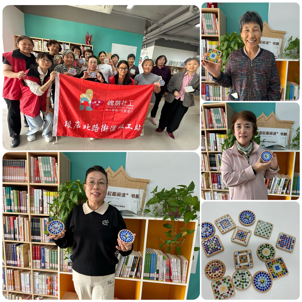 10月10日上午,重阳节来临之际,段店北路街道社工站开启了《“指尖灵韵,匠心艺萃”——心灵疗愈工作坊》的第一次小组活动,本次活动以“马赛克之美,杯垫华章”为主题,为社区居民带来了一场独特的手工体验,旨在缓解老人们退休后的无聊空虚与自我封闭,帮助他们战胜孤独感,提升动手能力,充分发挥小组活动的疗愈与互助作用。
