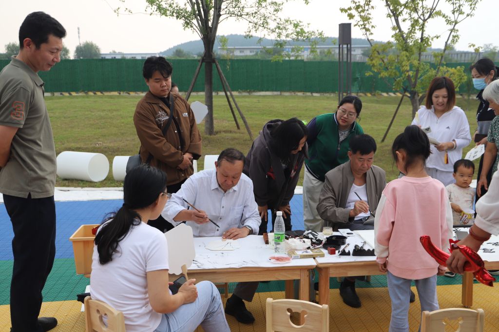 活动伊始,社工邀请书法大师,带领孩子们和家长一起体验书法的魅力。墨香四溢中,一笔一划间,孩子们不仅学会握笔、运笔的基本技巧,更感受到书法所蕴含的深厚文化底蕴。家长与孩子并肩作战,共同书写“国庆快乐”、“祖国万岁”等字样,一幅幅作品跃然纸上,墨趣童心,乐在其中。