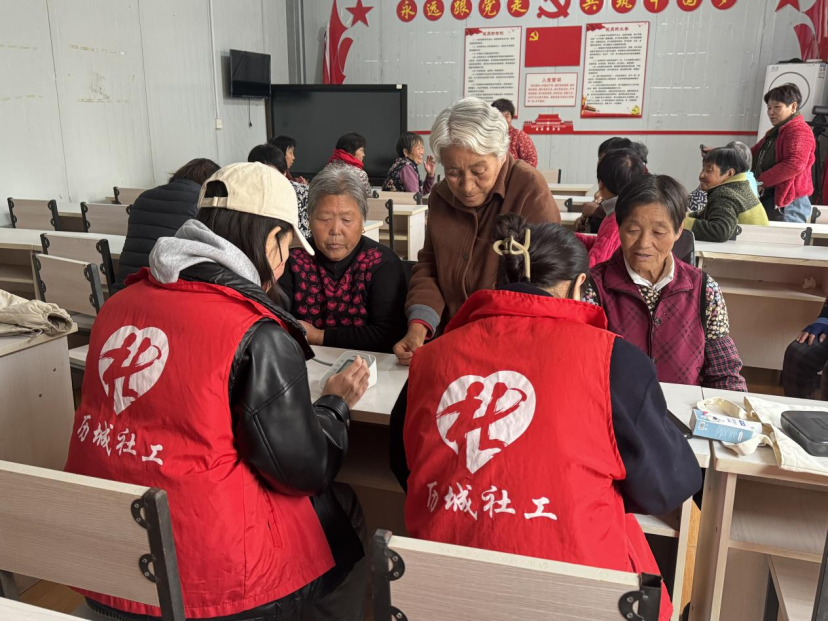 为倡导科学、文明、健康的生活方式,满足辖区老年人对养生保健知识的需求,11月15日,唐王街道社工站在大徐家庄村开展冬季暖心义诊与健康知识科普活动,为村居老年人带来血压血糖检测及老年人健康知识科普。