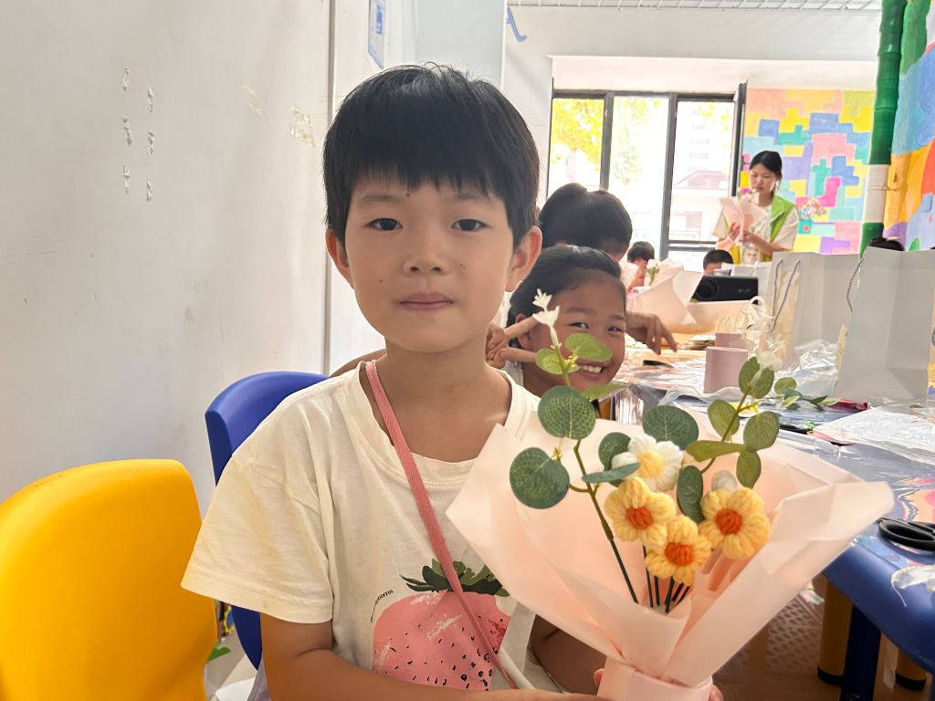 紧接着,社工带领孩子们一起动手制作教师节花束。孩子们认真地挑选着花朵,小心翼翼地将它们扎成一束,每一朵花都代表着他们对老师的爱和感激。在孩子们的巧手下,一束束色彩斑斓、充满心意的花束逐渐成型。孩子们的脸上洋溢着自豪和喜悦,他们迫不及待地想要将这份特别的礼物送给自己的老师。