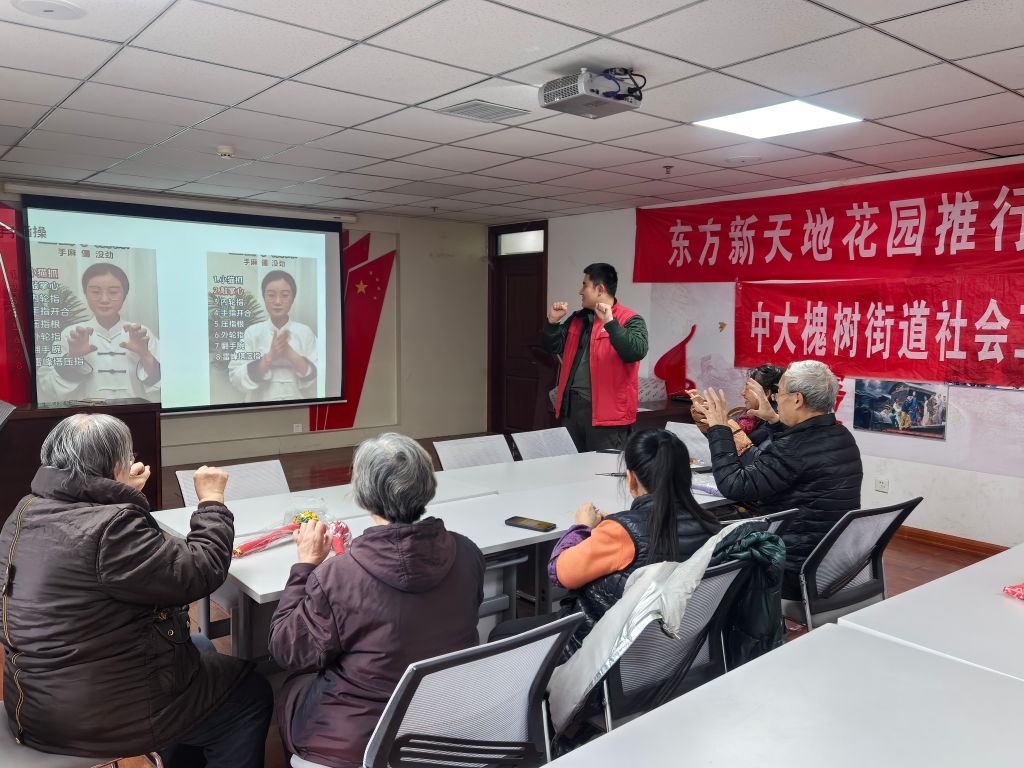 活动伊始,社工带组员们简单回顾了上节活动的主要内容,迅速唤醒组员们的记忆。制作完成艾草锤后,社工带领老人们一起体验了艾草锤八虚拍打操,组员们纷纷表示,在拍打过程中感受到了身体的微微发热和放松,体验到了拍八虚带来的奇妙效果。为了让老人们更加深刻地理解运动安全的重要性,社工着重强调了一系列注意事项。在进行手指操前,运动前的热身环节必不可少,从握拳、伸展到弯曲、按摩手心,每一个动作都充满了活力和乐趣,组员相互鼓励、交流心得,现场不时传来阵阵欢声笑语。社工分享了地中海菜谱,和组员一起学习了食物多样和种类搭配组合的重要性。在活动的最后,社工邀请参与者填写中期意见反馈表,以便改进后续的小组活动,组员们纷纷应征。