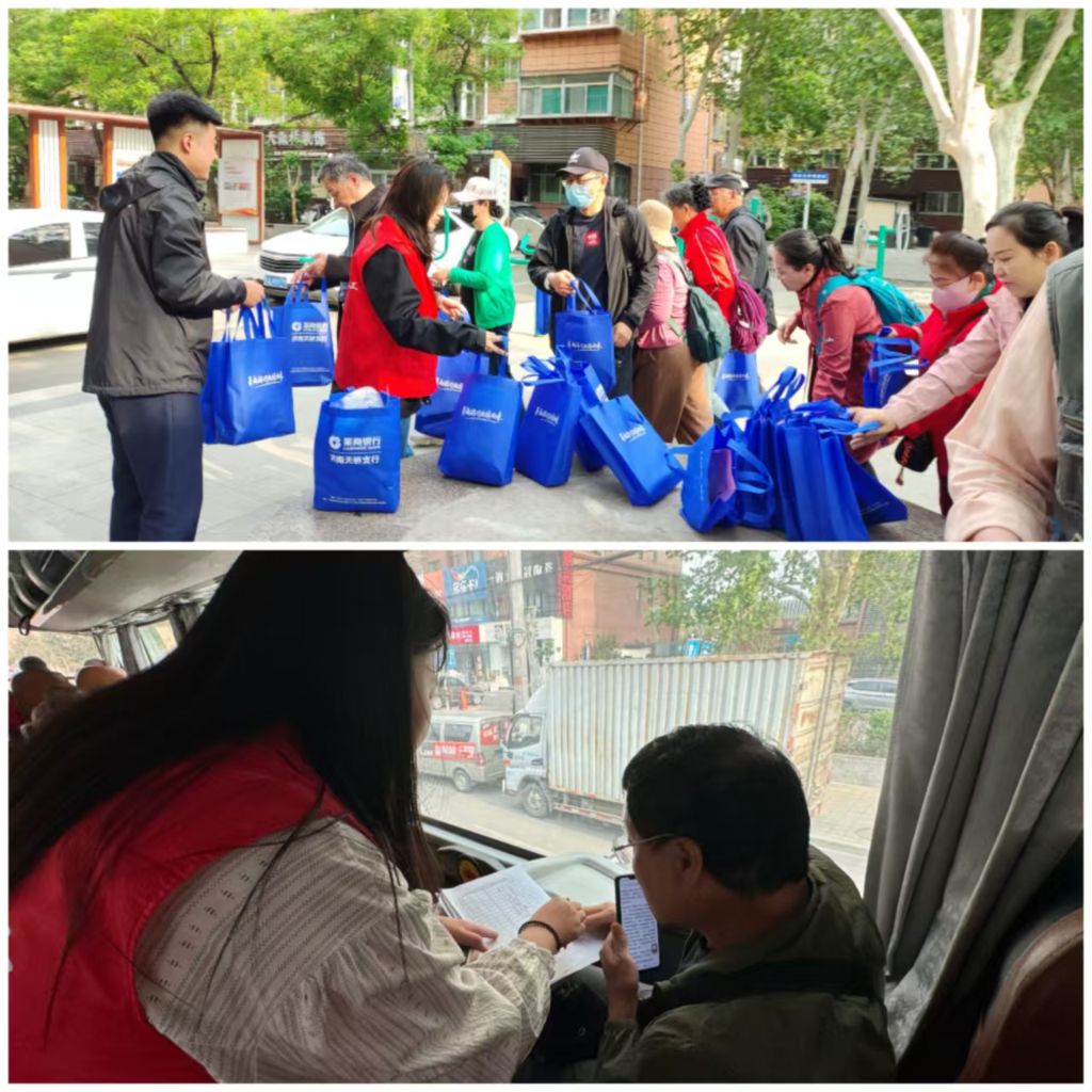 为确保活动顺利开展,社工们提前着手整合各方资源。社工链接莱商银行,为老年人提供早餐,早上七点,社工们便抵达集合地点,将早餐分发给老人们。同时,社工联系专业客运公司,调配了舒适宽敞的大巴车负责全程接送,车辆配备了专业司机和应急药品。社工还链接了馆方专业工作人员进行讲解和园区自助餐厅来提供丰富的午餐。社工全程悉心陪伴,确保参与活动老人的安全。