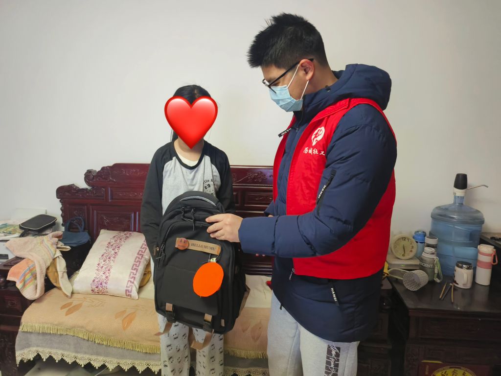 活动开展前期,社工站招募青年志愿者,共同开启这场温暖人心的助童活动。过程中,驻站社工与志愿者同困境儿童面对面交谈,认真倾听孩子们的心声,并为他们送上爱心书包、文具等学习用品,让这承载知识希望的物件,点亮孩子们的学习热情。在来到小刘(化名)家中时,社工了解到,作为事实无人抚养的他,因为缺少关爱,学习状态越来越差,为此,社工对其进行了心理疏导,并与孩子的监护人进行了细致沟通,为了进一步协助小刘有所改变,在遵循服务对象自决的情况下,与其进行了服务协商,按照小刘目前存在的问题以及面临的困境,社工做了细致分析,并为后续服务奠定了良好的基础。