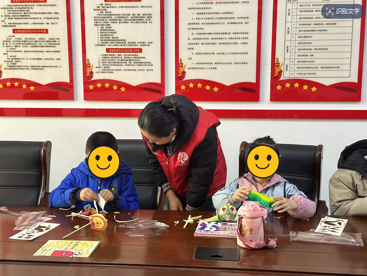 活动在一片温馨的氛围中拉开帷幕。社工们精心策划,挑选了一系列蕴含春节元素的绘本,通过引人入胜的故事和细腻精美的插图,引领孩子们踏入一个奇幻而充满魅力的文化世界。绘本的启迪下,孩子们不仅追溯了翻翻蛇这一传统手工艺的历史脉络与文化底蕴,更被其独到的创意与精湛技艺所打动,心中萌生了对制作的无限憧憬与好奇。
