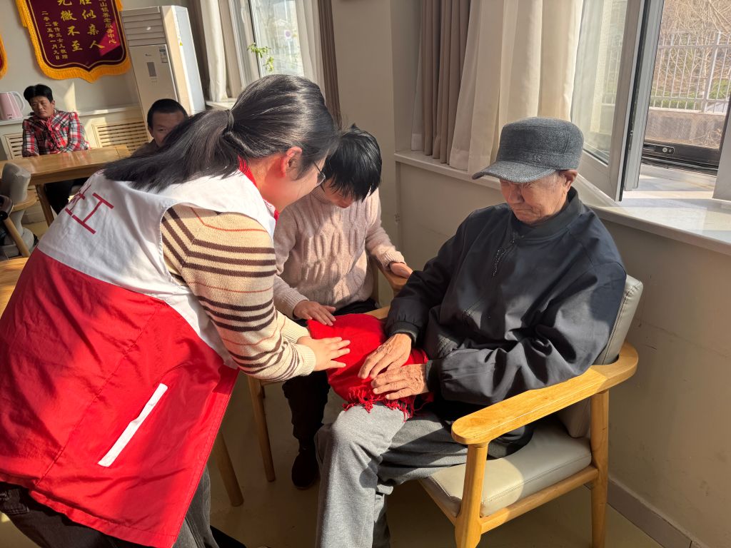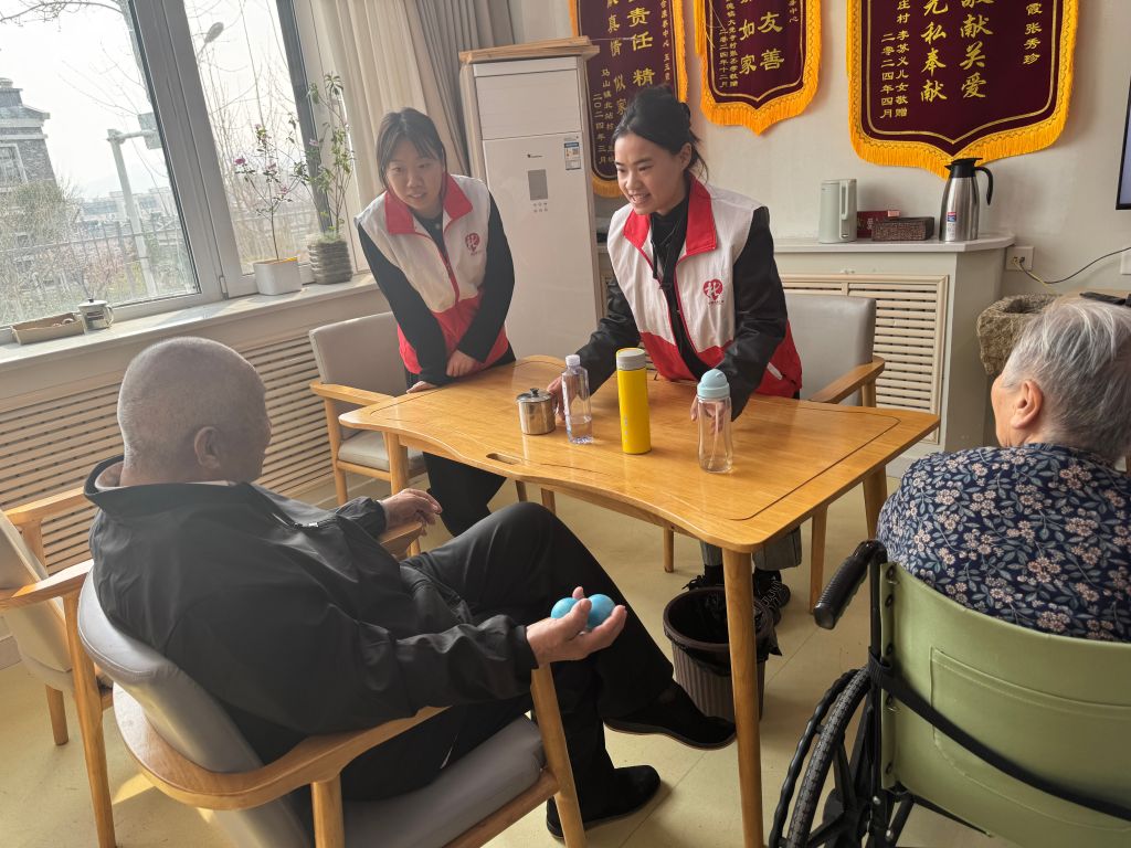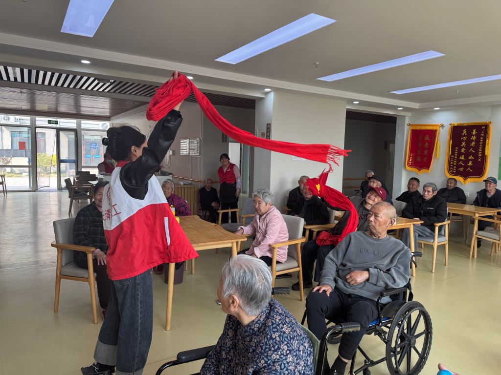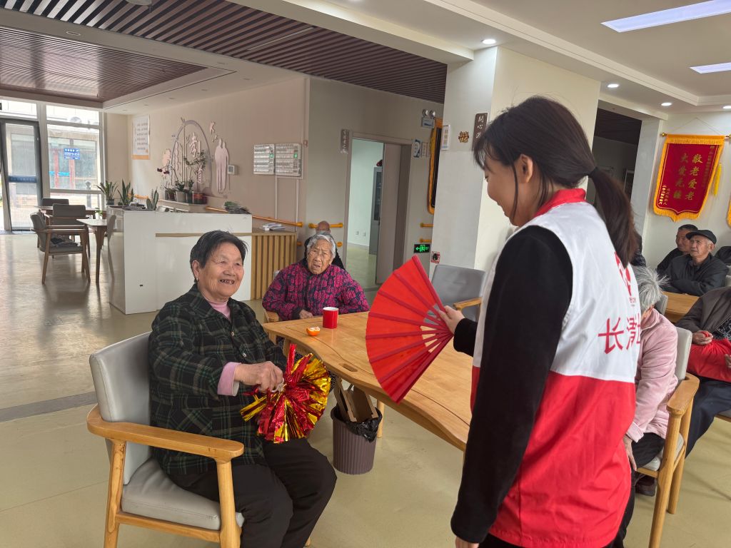活动以触觉体验环节拉开序幕。社工们巧妙设计了闭眼摸杯游戏,老人们需在黑暗中仅凭触感识别不同材质与形状的杯子,这一挑战既锻炼了他们的触觉敏感度,又增添了活动的神秘与趣味。此外,老人们还有机会亲手触摸丝绸、绒布等多种材质,细腻的触感、独特的纹理在他们的指尖跳跃,唤醒了对世界的重新认识。视觉训练环节为“色彩聚焦”。老人们手持彩色流苏装饰的团扇,跟随社工的节奏进行左右摆动、远近聚焦等视觉训练,通过追踪流苏的动态轨迹,有效提升了视觉辨识能力与手眼协调性。