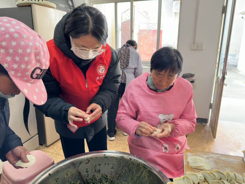 活动伊始,社工与志愿者们迅速投入到为老人服务的工作中,大家分工明确、各司其职,社工运用“1+1惠彩服务包”,为老人们免费测量血压、血糖,详细记录健康数据,并耐心为老人们解读结果,提供日常保健建议,助力老人们更好地管理自身健康。志愿者则忙碌于包饺子活动,他们与老人们围坐在一起,一边包着水饺,一边与老人亲切交谈,倾听他们的生活故事,分享生活中的点滴趣事,现场欢声笑语不断,其乐融融。