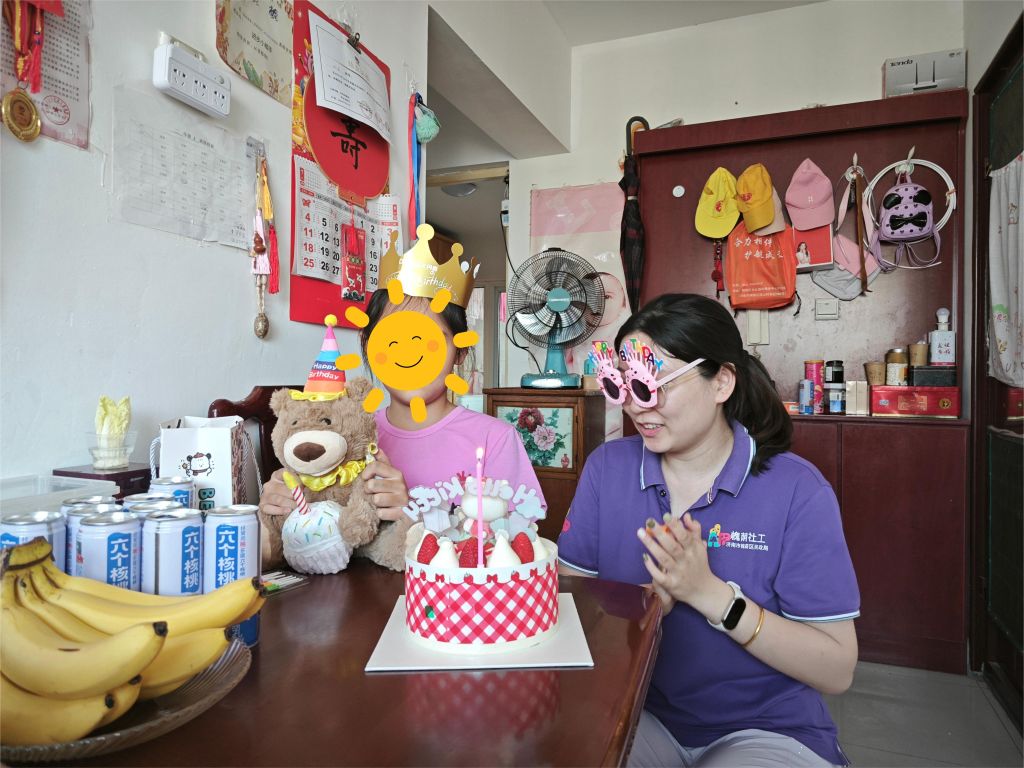 小焕(化名)是一个由奶奶独自抚养长大的孩子,平时因家庭经济条件有限,很少有机会庆祝自己的生日。但今天,一切都变得不同了。当社工们带着精心准备的蛋糕、气球和礼物出现在她家门口时,小焕的脸上露出了惊喜的表情。随着房门的缓缓打开,一场精心策划的生日会正式拉开序幕。社工们不仅为小焕唱起了生日歌,还与她一起吹灭了蛋糕上的蜡烛,许下了对未来的美好愿望。现场的气氛温馨而欢乐,小焕的家中充满了欢声笑语。社工还与小焕进行了深入的交流,了解她的学习、生活情况以及面临的困难。社工鼓励小焕要勇敢面对生活中的挑战,保持乐观向上的心态。同时,社工们也向小焕的家人表示将一如既往地关注和支持小焕的成长。