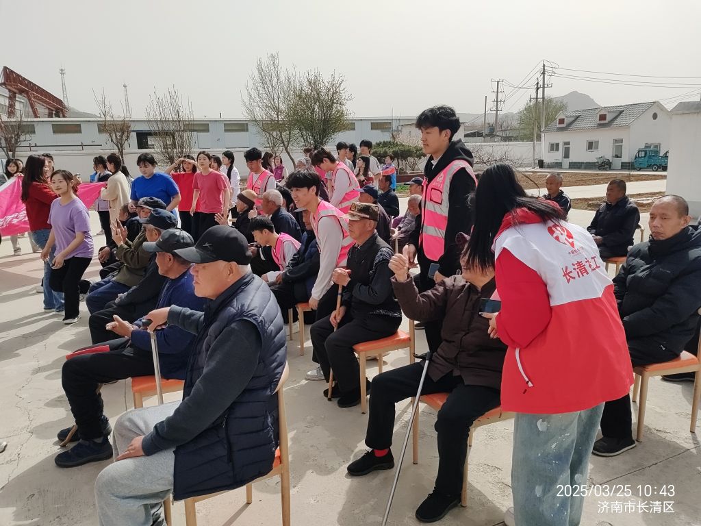 为进一步弘扬中华民族尊老、敬老、爱老的传统美德,践行“奉献、友爱、互助、进步”的志愿精神,2025年3月25日,长清区双泉镇社工站链接山东圣翰财贸职业学院艺术学院组织了一次别开生面的敬老志愿服务活动,为养老院的老人们送去了温暖与欢乐。