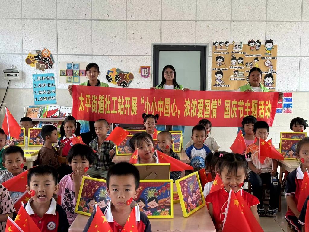 为庆祝中华人民共和国成立75周年,增强儿童的爱国意识,培养他们对祖国的深厚感情,9月29日,济南新旧动能转换起步区太平街道社工站开展“小小中国心,浓浓爱国情”国庆节主题活动。本次活动旨在通过寓教于乐的方式,让孩子们感受国庆喜庆欢乐的节日氛围,激发他们对祖国的热爱之情,此次活动共服务34人。