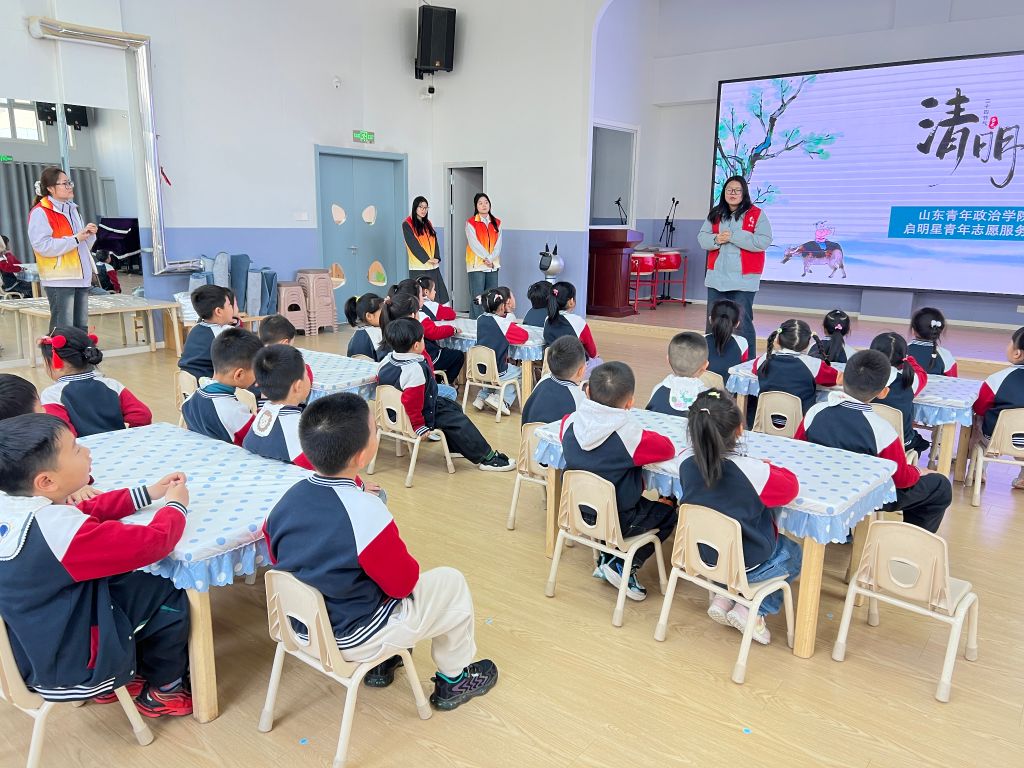 活动开展前期,社工站积极链接大学生志愿者,为此次活动的开展助力,一方面调动志愿者的积极性,一方面增强儿童对志愿服务的认识。过程中,志愿者细致讲解了关于清明节气的由来、美食、民俗、诗歌等文化内容,通过风趣幽默的话语不断激发孩子们的学习热情。从古代农耕文明与自然节律的紧密关联,到历史长河中清明逐步融合寒食节习俗的演变历程,从“古诗”手指舞到回顾整个学习历程,不断深化节气传统文化在儿童心中的印记。