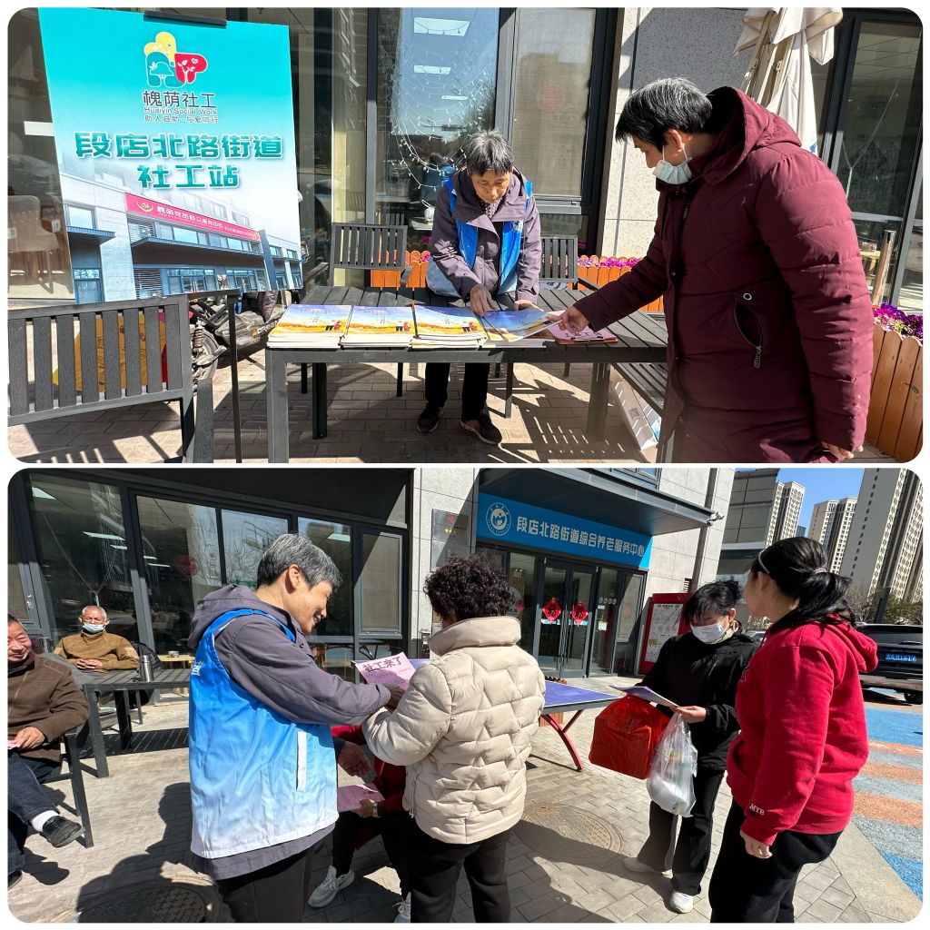 3月18日,段店北路街道社工站联合社区志愿者在辖区开展了一场别开生面的社工日外展宣传活动。此次活动不仅吸引了众多社区居民参与,还迎来了一位特殊的志愿者——社区空巢老人王阿姨。王阿姨曾是社工站服务的受益者,如今她化身志愿者,与社工站社工一同为社区居民提供服务,用实际行动诠释了“助人自助”的社工理念。
