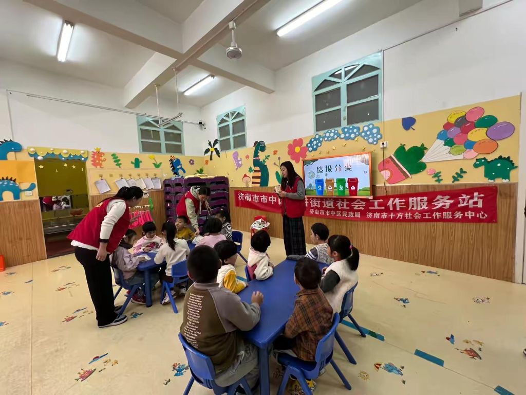实行垃圾分类,既关系广大居民群众的生活环境,又是社会文明水平的重要体现,而儿童作为未来的主人翁,他们环保意识的培养尤为重要。为了提高儿童保护环境的积极性, 培养儿童爱护地球妈妈的使命感,11月18日上午,舜耕街道社工站链接辖区春天幼儿园,联合舜航社区新时代文明实践站开展了“创意无限 童心共筑绿色未来”垃圾分类主题活动。