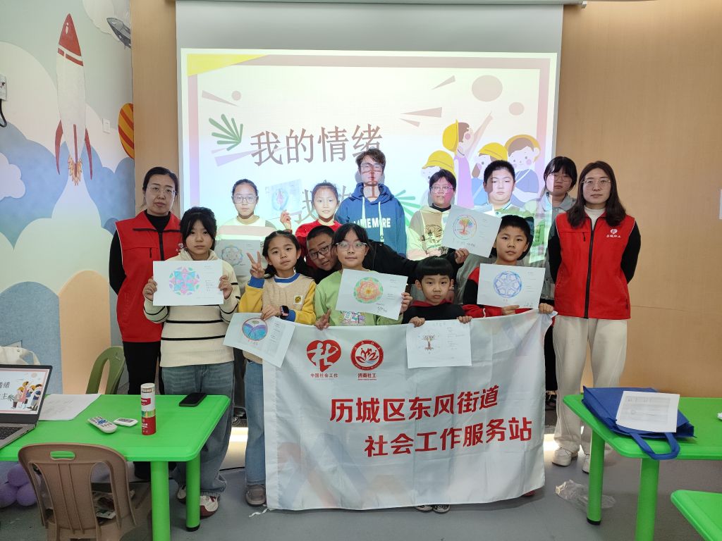 基于对未成年人心理健康的高度重视,以及对他们成长需求的深刻洞察,近日,东风街道社工站联合未成年人救助保护中心精心策划并成功举办了“繁星启梦社”小组活动——我的情绪我做主,此次活动以过曼陀罗绘画和情绪疗愈卡两种独特方式,深入探索孩子们的内心世界。