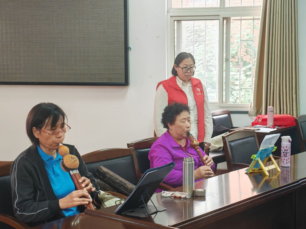 活动前期,社工通过对老年人兴趣爱好的调研,了解到他们对葫芦丝的喜爱,于是,策划了本次以葫芦丝为主题的文化活动。活动当天,社区文化活动中心内早已聚集了众多老年葫芦丝爱好者。他们手持葫芦丝,脸上洋溢着喜悦与期待。在活动过程中,社工积极协助指导老师开展工作。他们帮助那些行动稍显不便的老人调整坐姿,确保他们在练习时能够舒适且专注。当老人们在学习中遇到困难,比如指法难以掌握或者气息运用不当时,社工会在一旁轻声鼓励,并协助老师进行一对一的辅导。社工们深知,对于老年人来说,每一次的尝试都是勇气的体现,他们的鼓励如同春日暖阳,给老人们带来继续学习的动力。