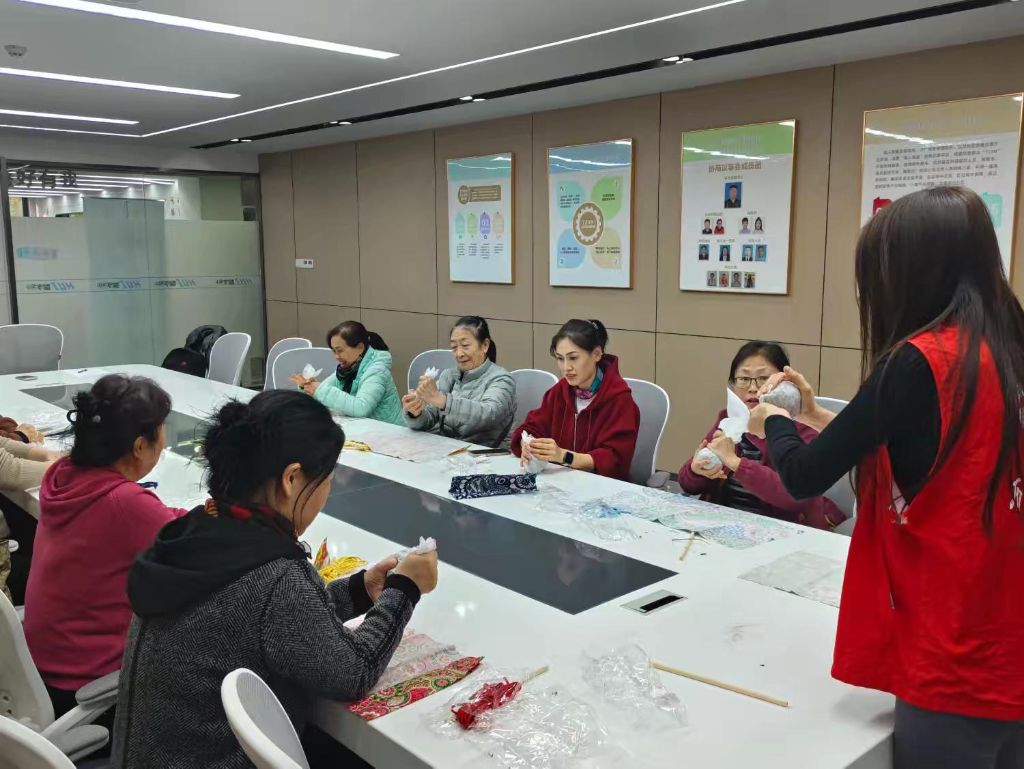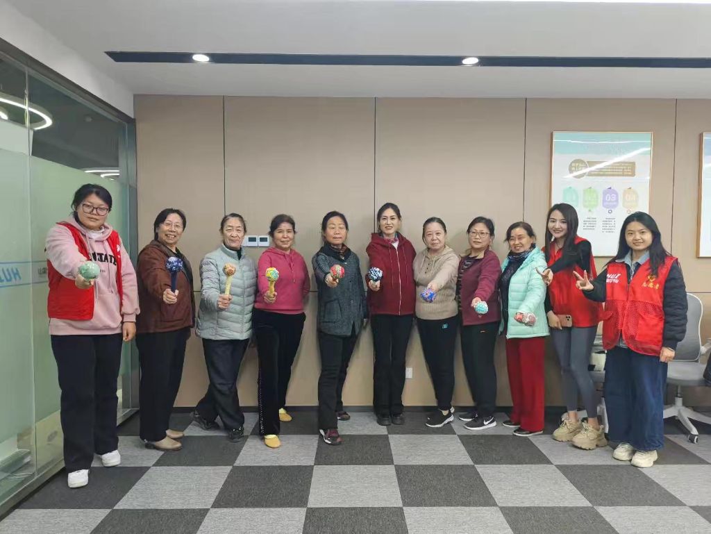 目前,小组已经进入成熟阶段,组员之间的凝聚力越来越强,小组长早早带领组员来到活动现场,组员间已经形成了密切的组内关系,相互间也更加默契。活动过程中,驻站社工讲解了冬季养生知识,从饮食到生活习惯再到养生方法,组员们听的津津有味,不时点头并伴随着“学到了、学到了...”的声音,表示认同。随后的“养生锤”环节,更是将活动推向高潮,组员们迫不及待的打开材料包,并一再表示“刚刚学完拍八虚,一会儿做完就能用上,你们真是太用心了”。随着社工的耐心讲解制作方法,很快,一个个精美的艾草锤呈现眼前,在工作人员的带领下,大家按节奏“拍八虚”,组员们相互鼓励、互相监督,每个人都既认真又专注的做着每个动作。