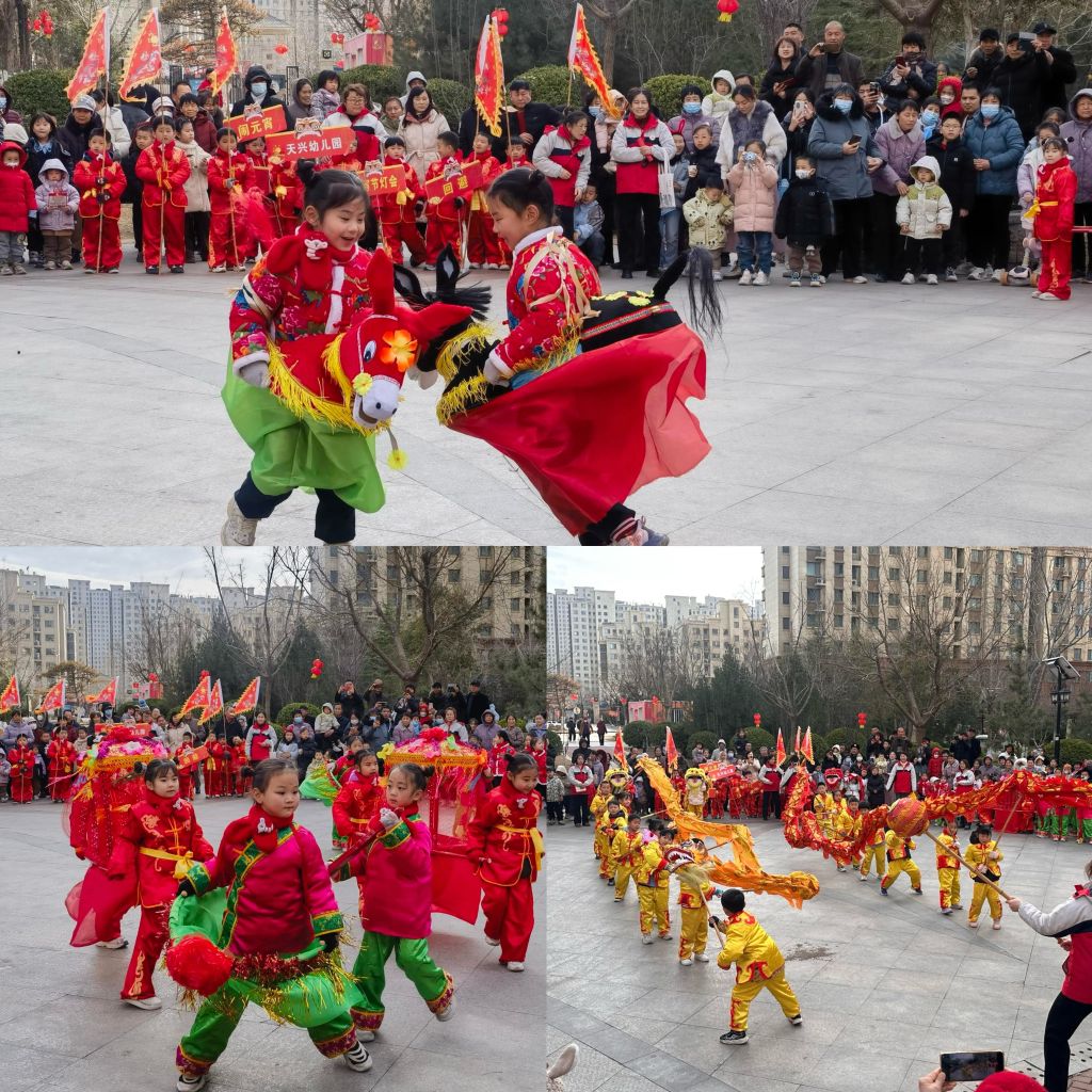 活动伊始,天兴幼儿园唐冶分园萌娃龙灯队踏着鼓点惊艳亮相,孩子们身着喜庆的服装,精神抖擞地舞龙舞狮,随后,秧歌队紧随其后,传统的年俗表演划旱船与骑毛驴方针开始在社区里穿梭巡游,一时之间,社区到处都洋溢着节日的喜庆气氛,生动绘就了一幅社区治理与传统文化交融的动人画卷。
