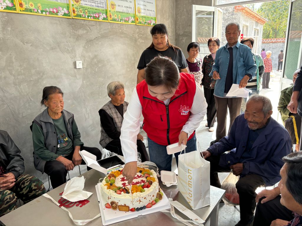 活动现场,老人们欢聚一堂,围桌而坐,大家共同为老年人致以温暖关怀和美好的祝福,社工为老人切分香软的蛋糕,分享甜美喜悦。随着一阵阵香气从厨房飘来,幸福院开餐啦!社工引导老人们有序入席,为每桌陆续端菜,碗筷碰撞间,老人们个个脸上都洋溢着幸福的笑容,一道爱心餐饭,暖胃更暖心。