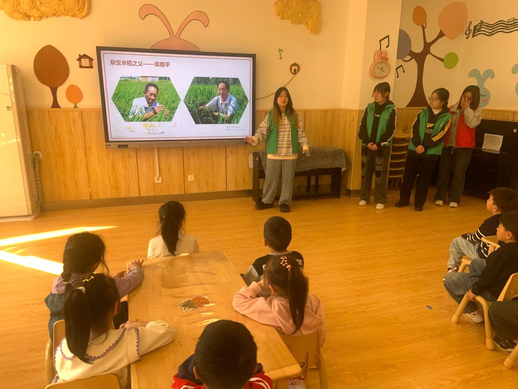 活动现场,社工以生动的语言和丰富的图片,向孩子们介绍了农作物的生长变化,从播种到收获的每一个环节都娓娓道来。孩子们听得津津有味,仿佛置身于金黄的麦田和稻田之中,感受到了丰收的喜悦和农民伯伯的辛勤付出。在讲述过程中,社工特别提到了被誉为“杂交水稻之父”的袁隆平爷爷的伟大贡献,让孩子们了解到每一粒粮食背后都凝聚着无数人的辛勤汗水和智慧结晶。这一环节不仅激发了孩子们对袁隆平爷爷的崇敬之情,也让他们更加深刻地认识到了珍惜粮食的重要性。
