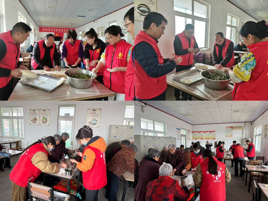 三月的晨光漫过崔家幸福院的黛瓦,社工们和民政局志愿者的红马甲如跃动的火苗,在挂着"农村幸福院"铜牌的院门前格外醒目。当天,民政局的志愿者们带着满满的关怀和新鲜的韭菜、茴香、肉馅等食材来到崔家幸福院。
