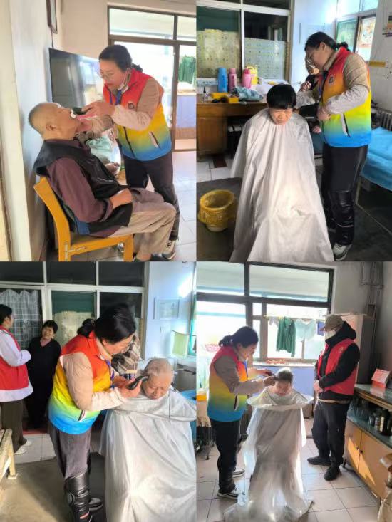 一早,社工、社区工作人员与理发师携带专业理发工具,叩响了一户户长者的家门。一进屋,长者便亲切地与社工寒暄,公益理发师仔细询问其理发需求与偏好,随后,迅速布置好简易温馨的“理发角”。伴随着剪刀与推子的轻微声响,一缕缕发丝缓缓飘落,理发师专注且耐心地为长者修剪出整洁利落又舒适美观的发型。期间,社工不时与长者唠家常,欢声笑语回荡在屋内。