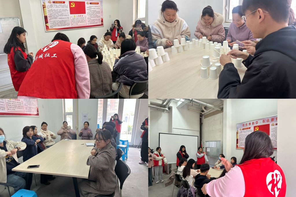 活动开场,社工站精心设计了“杯子叠叠乐”互动游戏。居民们通过传递纸杯、叠加造型的趣味挑战,快速消除陌生感。随后进行的“健康拍拍操”环节,志愿者带领大家边拍打穴位边念口诀:“肩膀拍拍、手肘拍拍”,欢声笑语中既活跃了气氛,又科普了日常保健知识。